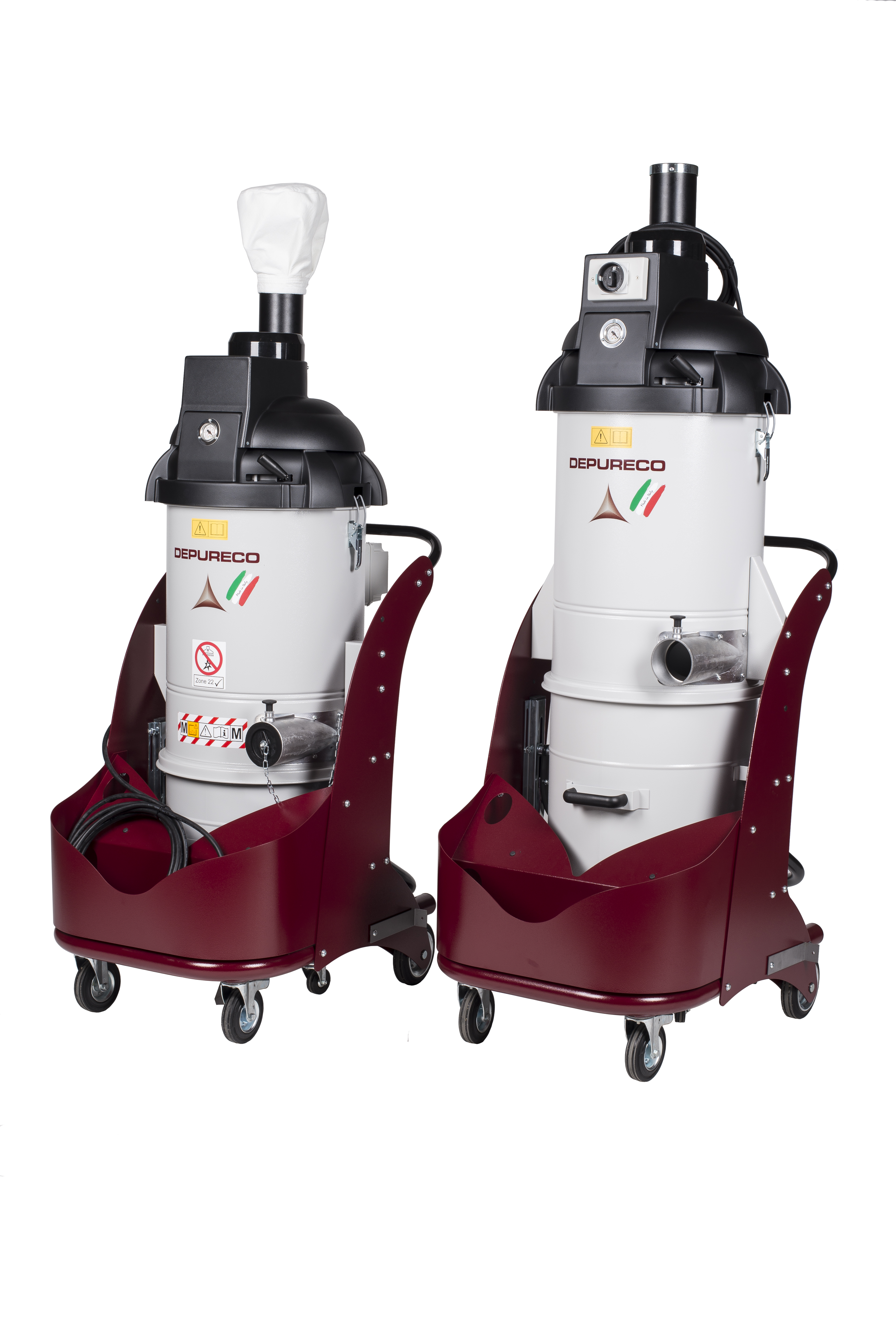 三相工业吸尘器,配备侧风线性涡轮、释放阀,水平手动震动滤芯清洁系统,热感开关和外加消音器。